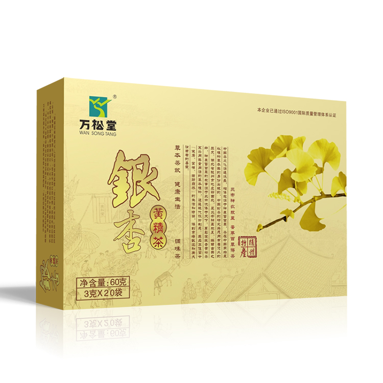 【主要原料】银杏白果 (15%),黄精 (10%),绿茶,决明子,沙棘,火麻仁,桑椹,茯苓,枸杞子,松花粉